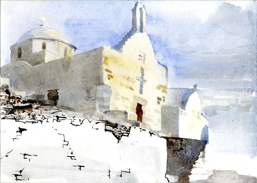Aghios Konstandinos, watercolor on paper, 19 x 27 cm (7.5 x 10.5 in), sold